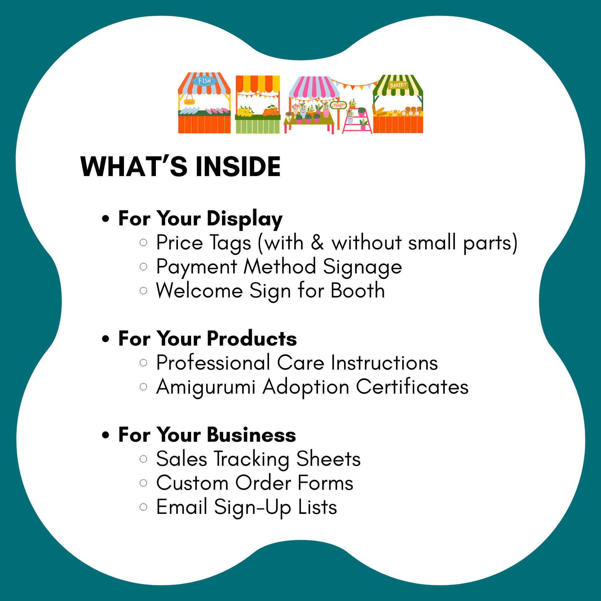 𖧹 Welcome Signage: Includes a "Welcome" sign to inform customers what you sell as they enter your booth. Providing clarity = conversions. 𖧹 Payment Signs: "We Accept" signage with placeholders for your Venmo QR code. 𖧹 Email List Sign-Up: A simple, high-converting sheet to grow your newsletter list. 𖧹 Amigurumi Adoption Certificates: Add a special touch that customers love.