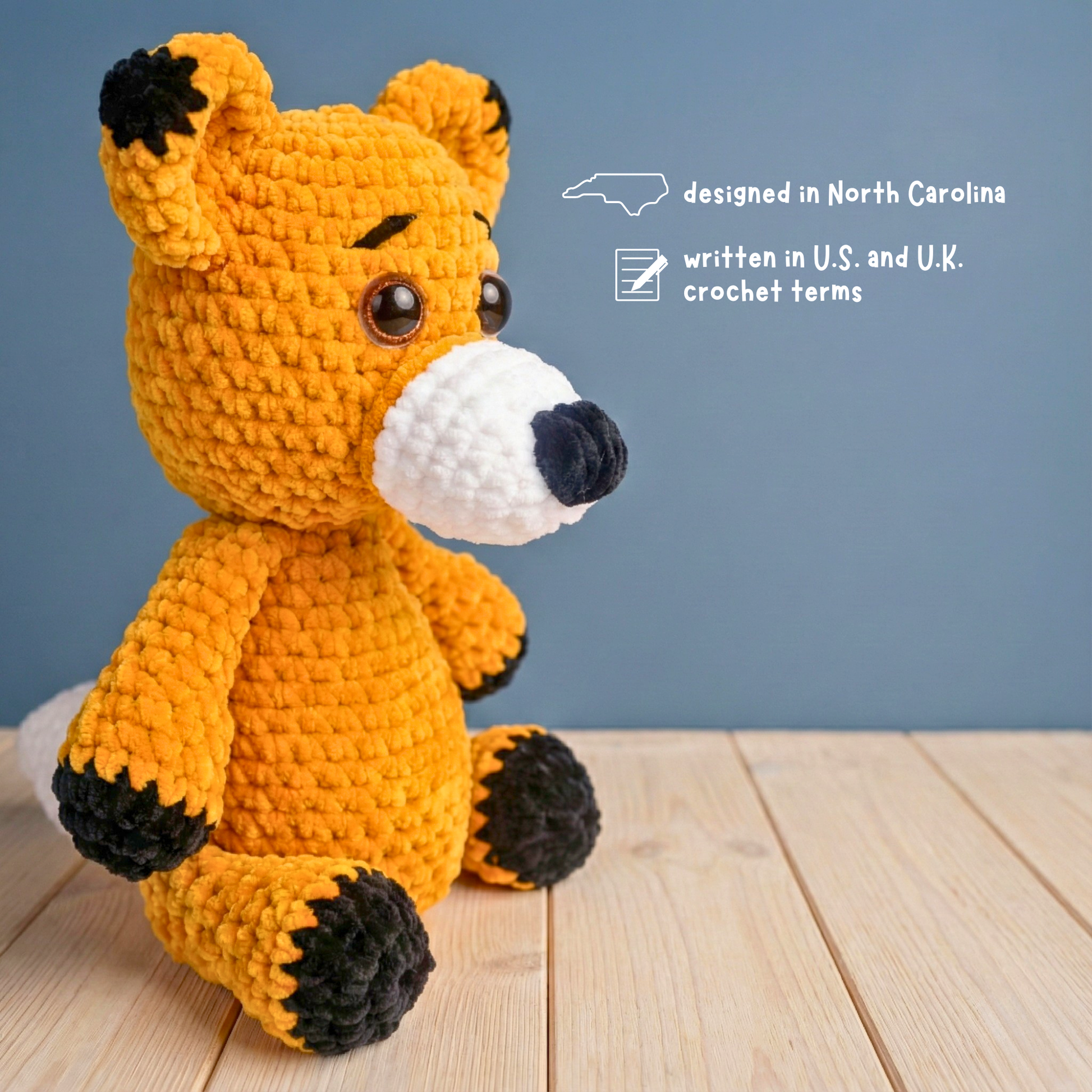 This fox plushie crochet pattern is very beginner friendly and includes clear, step-by-step instructions and photo tutorials throughout. Written in both US and UK crochet terms.