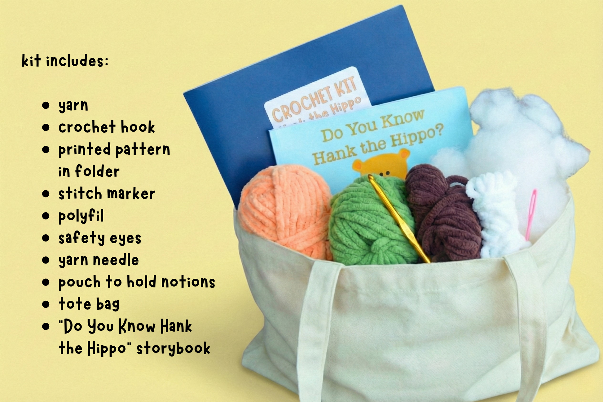 This all-in-one set provides everything you need to bring Hank to life. His crochet pattern is exclusive to this kit, and cannot be purchased individually.