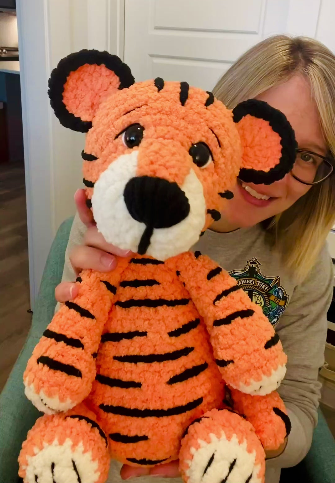 This tiger crochet pattern is perfect for beginners who want to make an adorable stuffed animal with chunky yarn. The amigurumi tiger is soft, squishy, and fun to crochet, an ideal handmade gift for kids or a sweet addition to your craft market table.